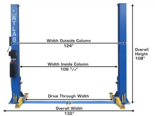 The Atlas® BP8000 is a baseplate two-post lift designed for low ceiling garages. The total column height of 108 inches or 9 feet allows this lift to be installed in almost any professional or home garage with a ceiling as low as 9 foot 3 inches. The BP8000 also has many of the popular features found on larger more expensive lifts, including a single-point lock release, Super-symmetric arms, and a twelve piece truck adapter set.