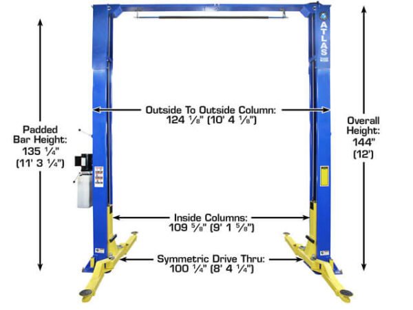 The Atlas 9,000 lb. capacity overhead 2-post lift is perfect for your small business or home shop. It allows perfect access to almost any part on your car or small truck. Make working on and maintaining your cars an easy and safe experience.